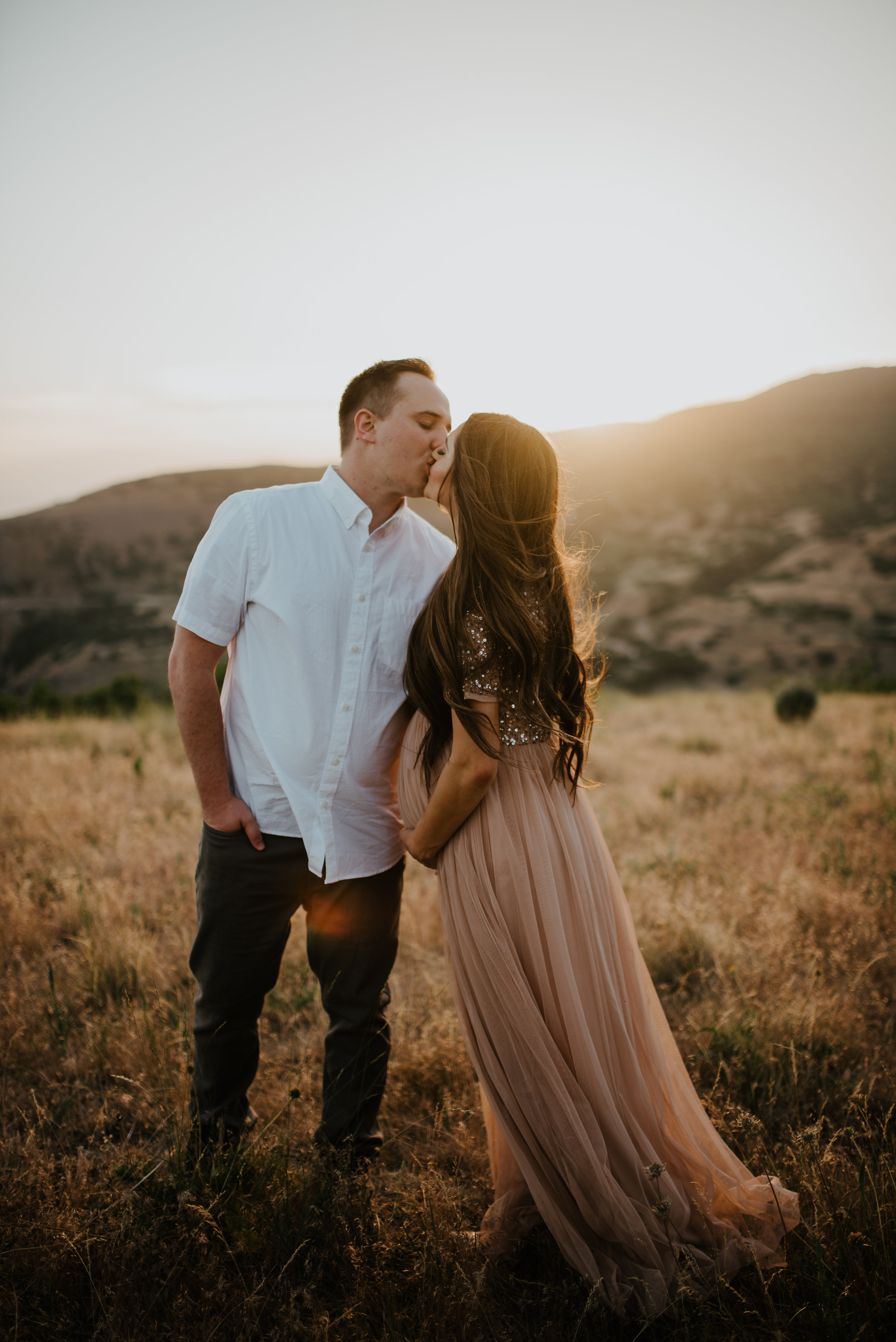 I sat at a blank screen for awhile trying to figure out how to begin this blogpost because I had so many favorite things about this session that I didn’t know where to start! Shelby’s amazing tulle and sequined ASOS dress, the cutest baby bump in all the land, her long flowing locks, her adoring husband, their sweet relationship, the perfect summer light, this location….gah. This has quickly become one of my favorite locations because of it’s amazing views, diversity, and light. I will always recommend it to everyone. Also, can we appreciate Shelby’s GORGEOUS dress? It was so perfect to show off her cute baby bump and her sharply dressed hubby was soooo sweet! I personally love when husband’s join their wives for maternity shoots. Scroll for some yummy baby bump goodness…
